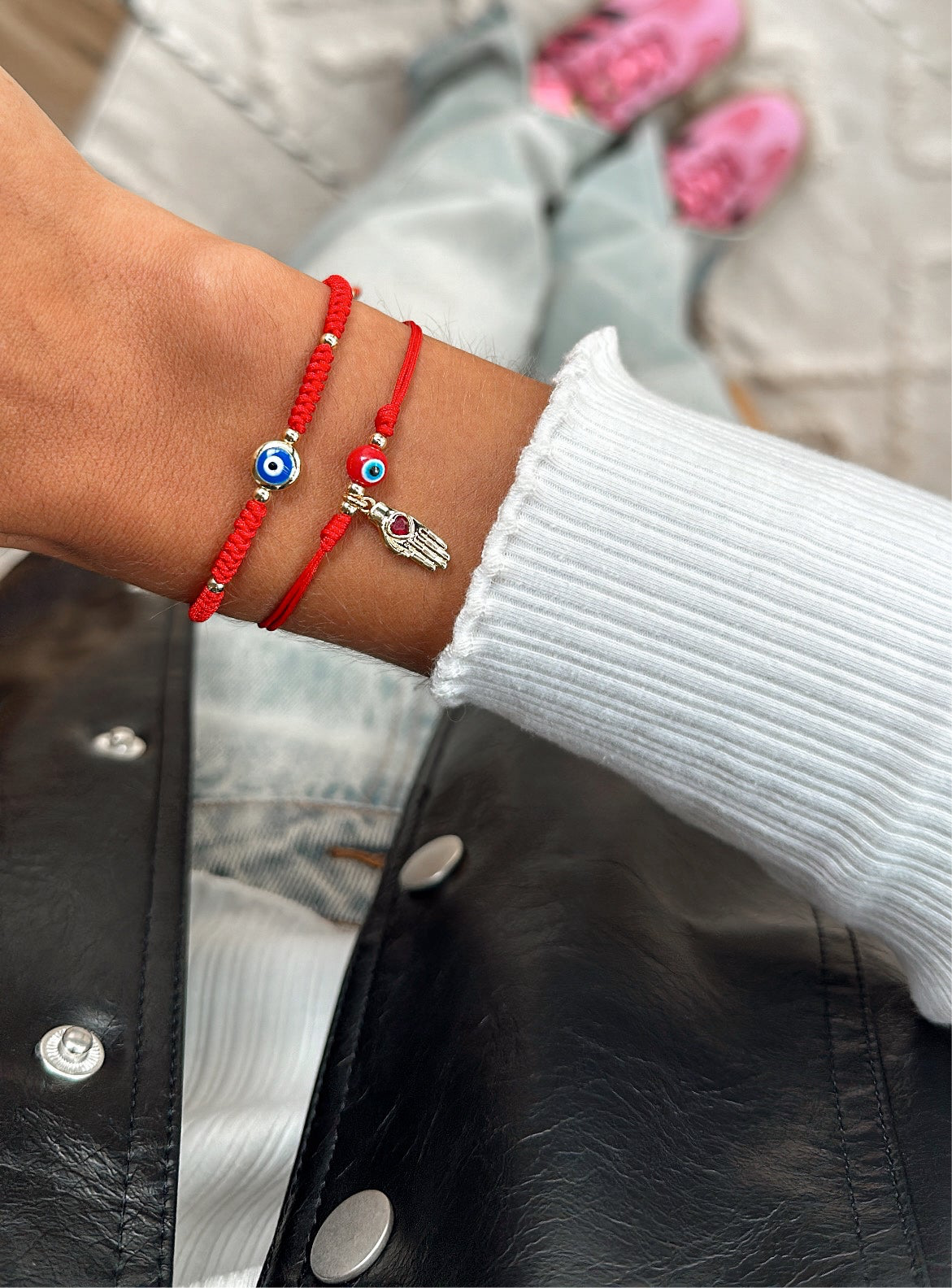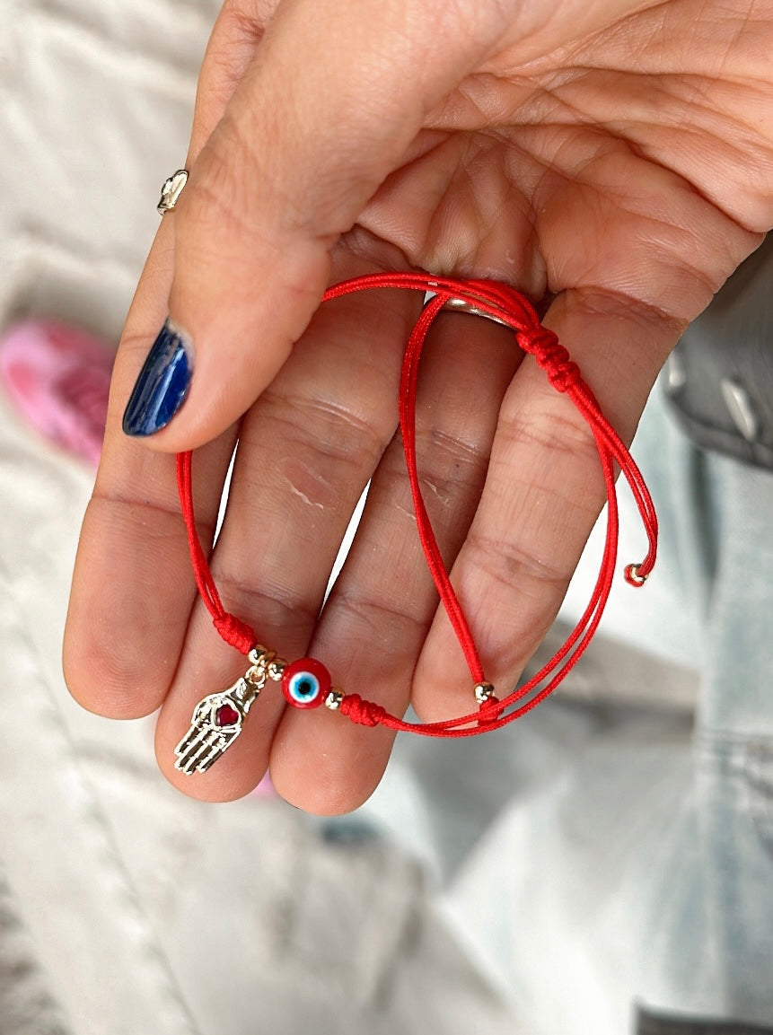 Amuleto con manito en el centro un corazón en cristal checo + ojito en acrílico rojo