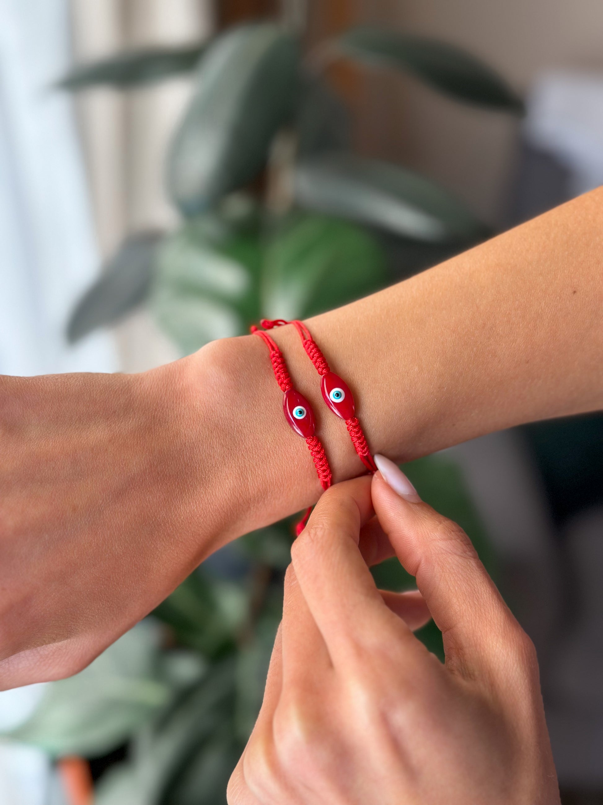 Un amuleto pensada para proteger tu energía desde el primer instante. El hilo rojo simboliza fuerza, confianza y cierre de caminos negativos; el ojito turco, por su parte, actúa como un escudo suave que bloquea la envidia y aleja cualquier vibra que no sea para vos.