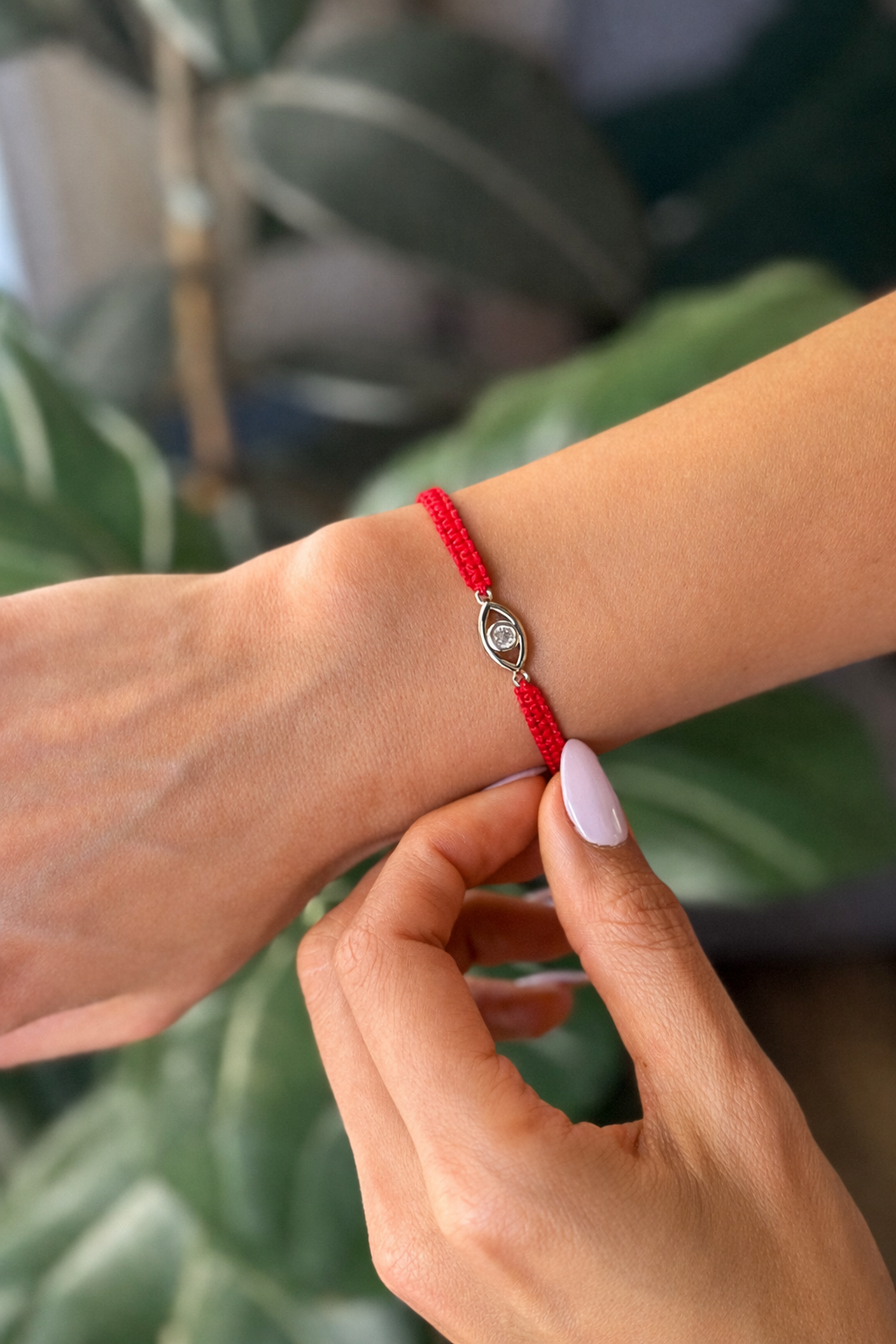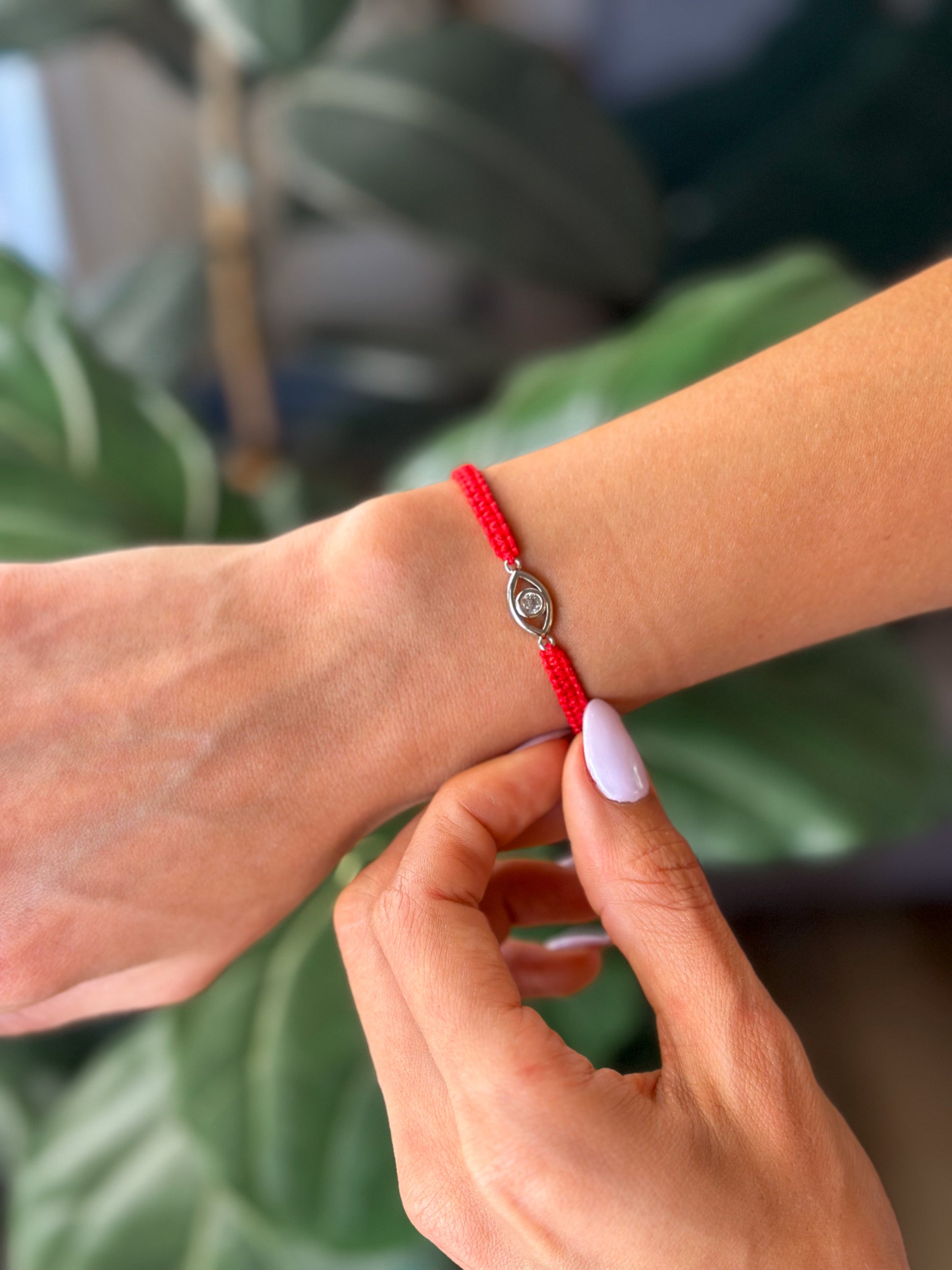 El hilo rojo corta la energía negativa y el ojito plateado actúa como guardián, cuidando tu vibra y acompañándote todos los días.