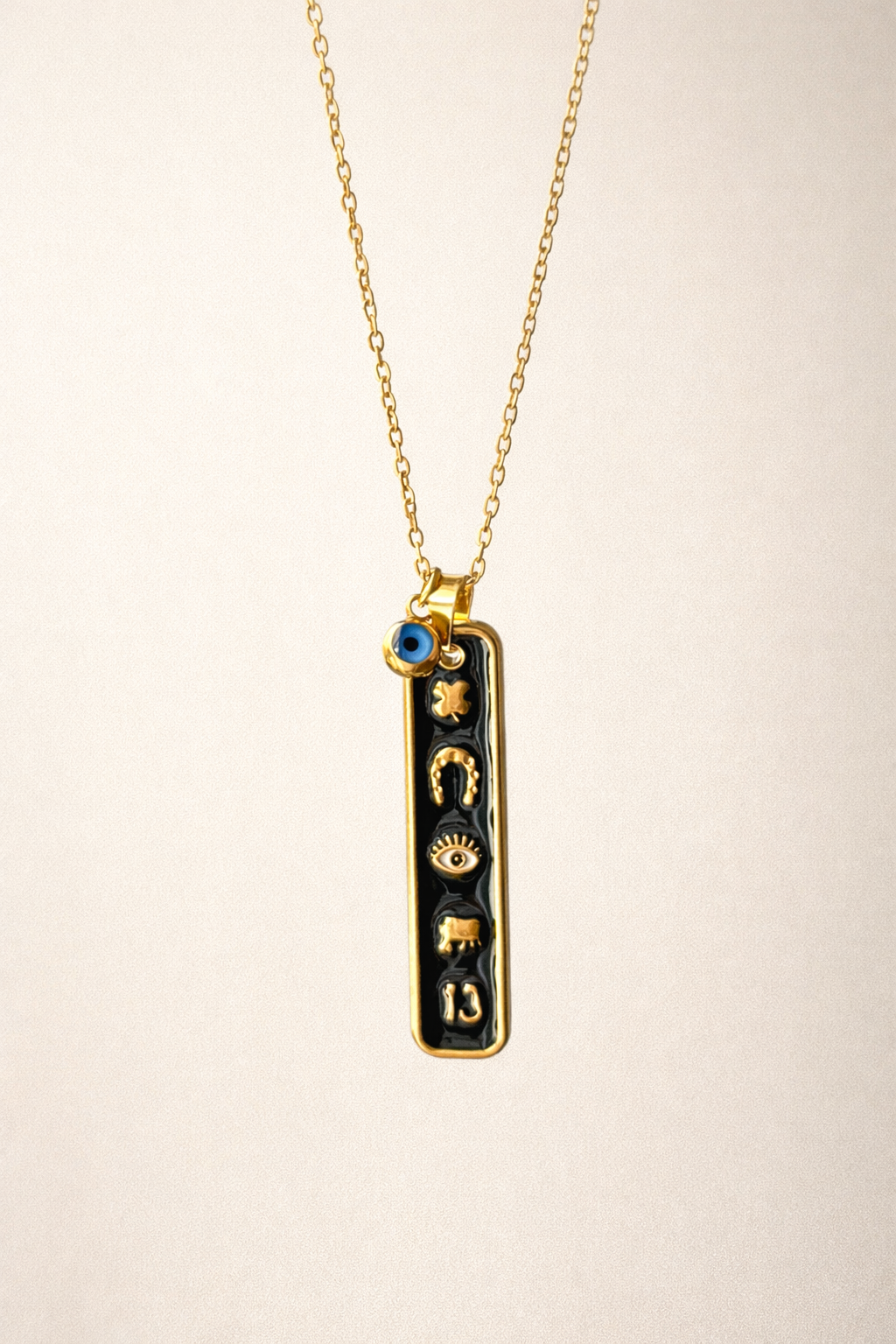 • Dije/Amuleto: Chapado en oro sobre latón, con un acabado brillante y delicado.