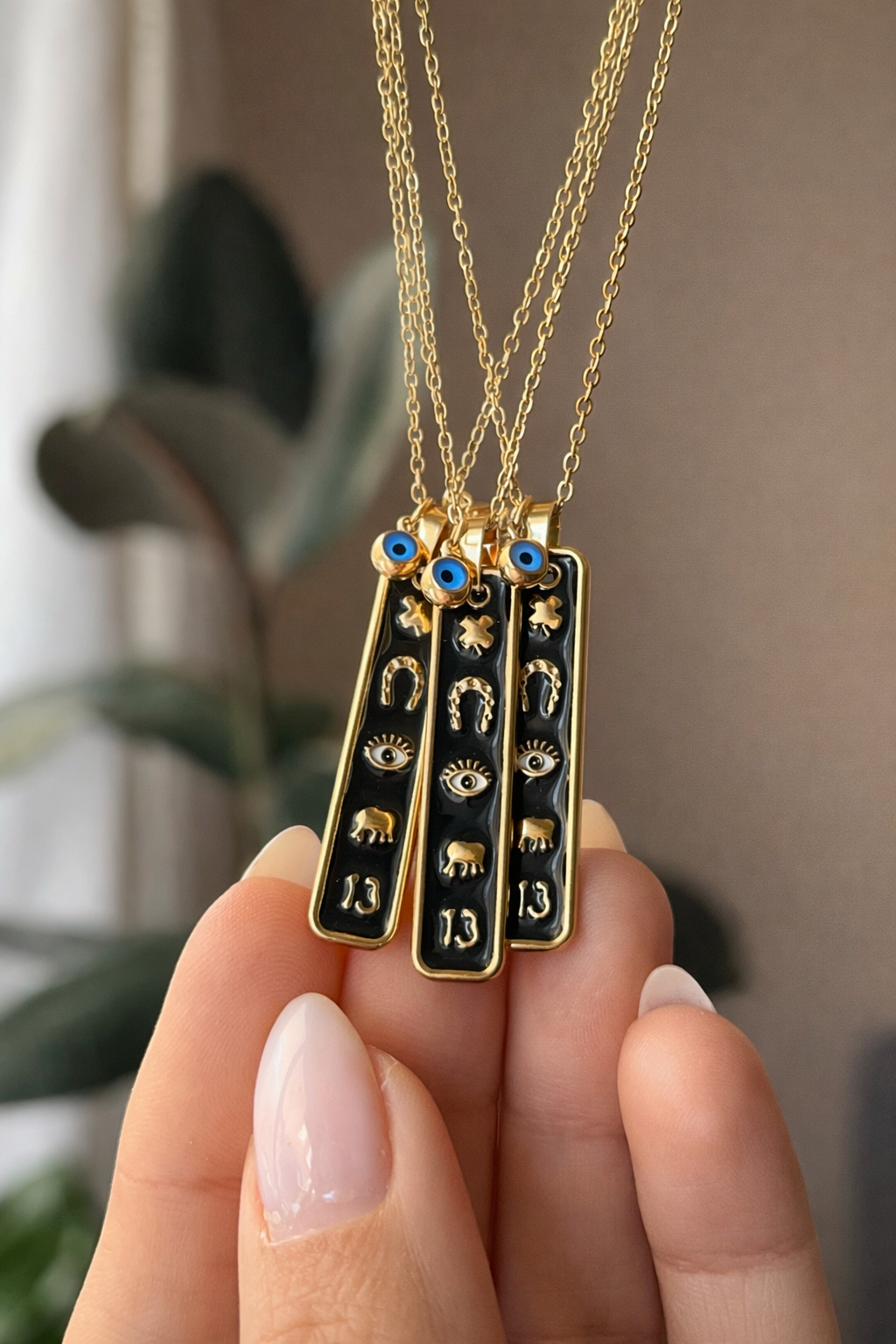 (Charm con Trébol, Herradura, Ojo Turco, Elefante y el número 13)