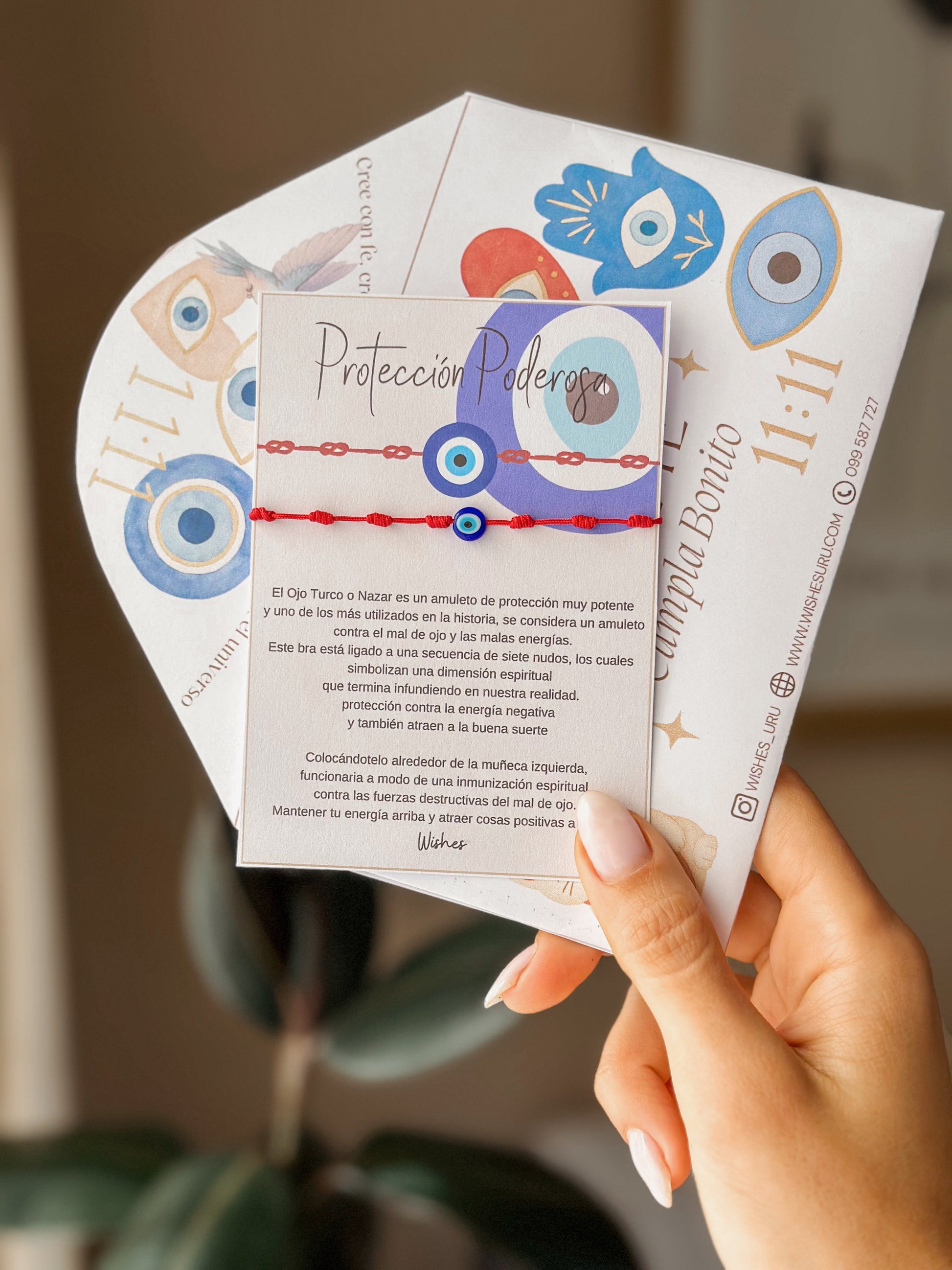 Brazalete de ojito turco de 8 mmen acrílico más 7 nudos