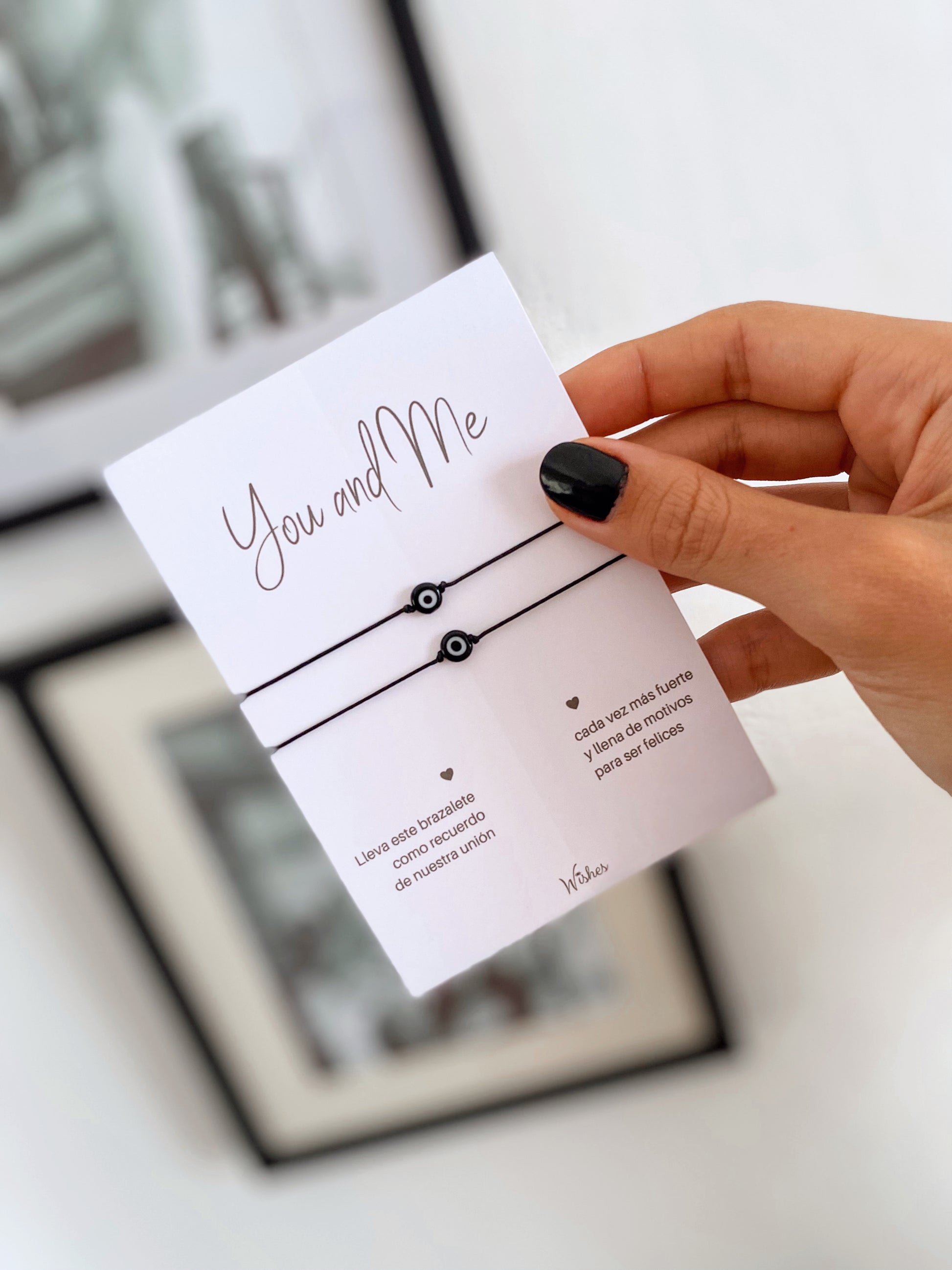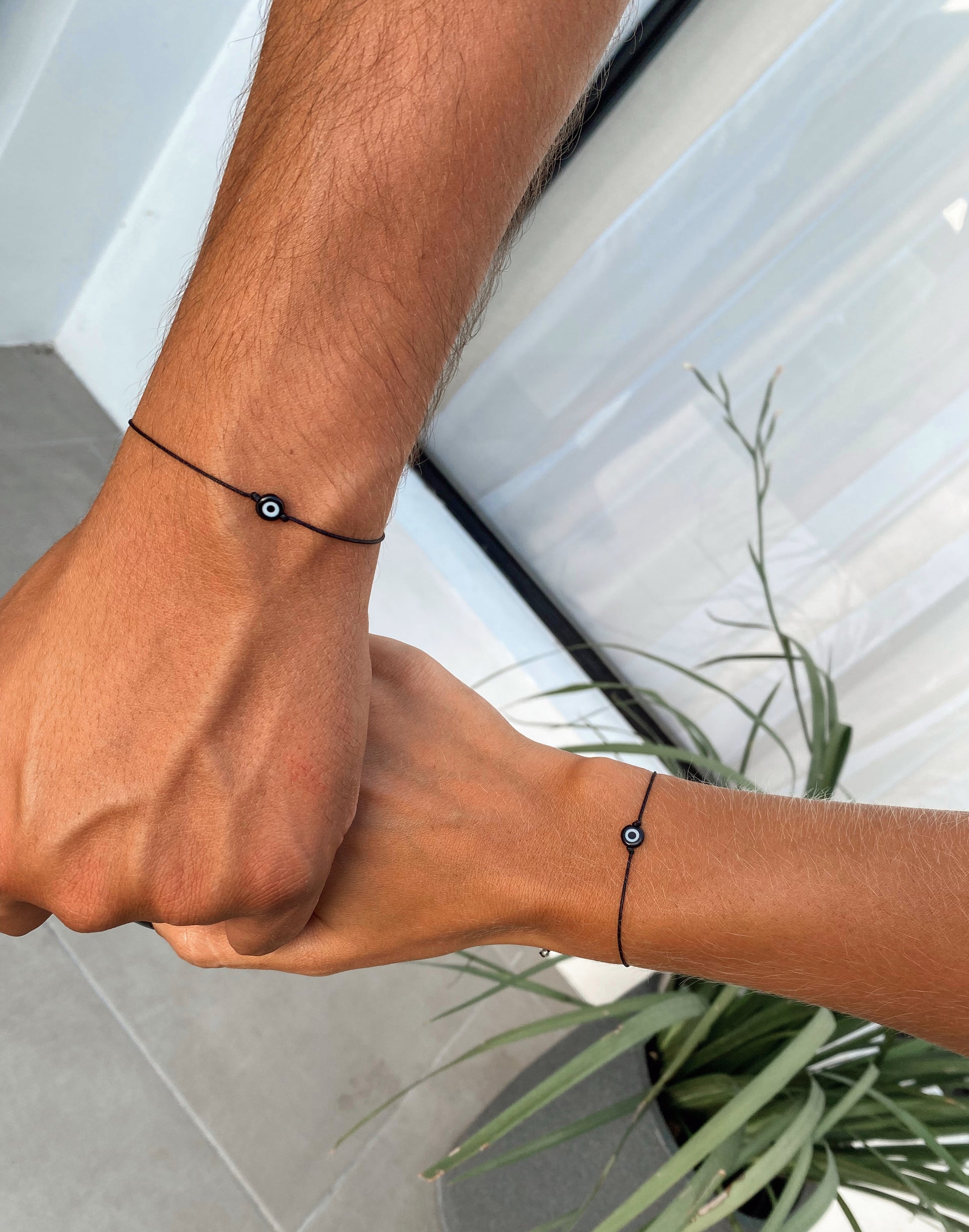 Par de brazaletes ojitos turcos de 6 mm en color negro