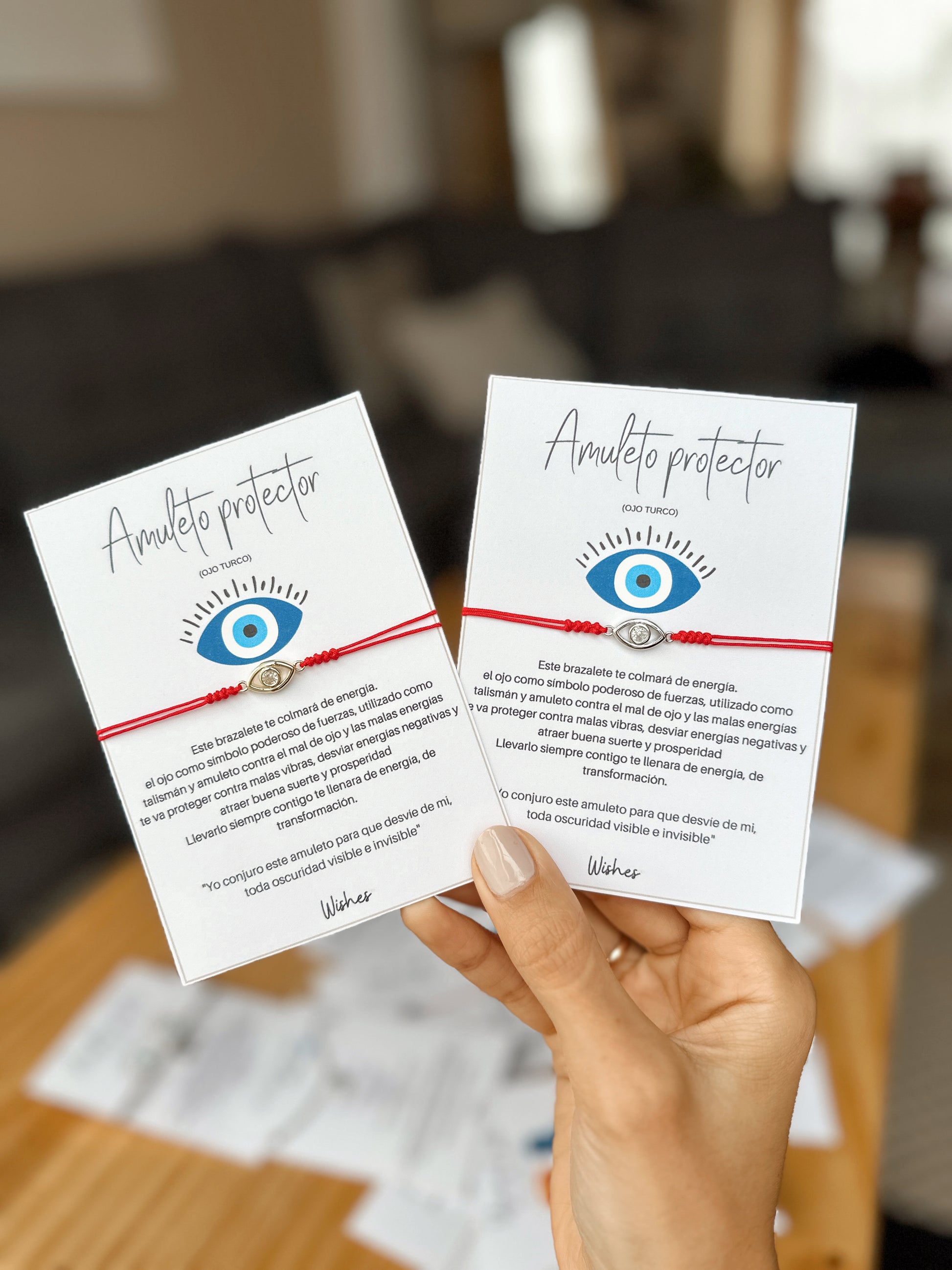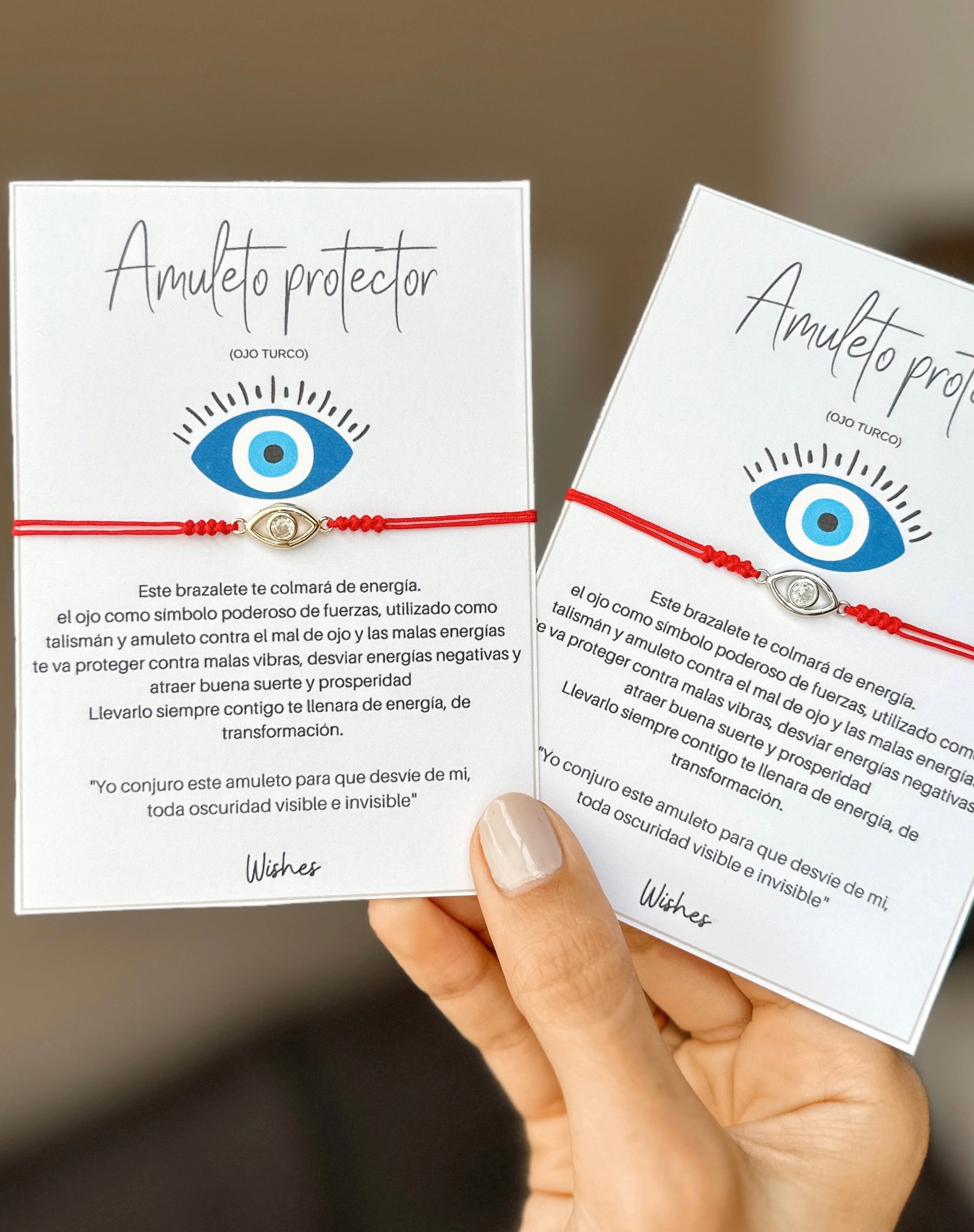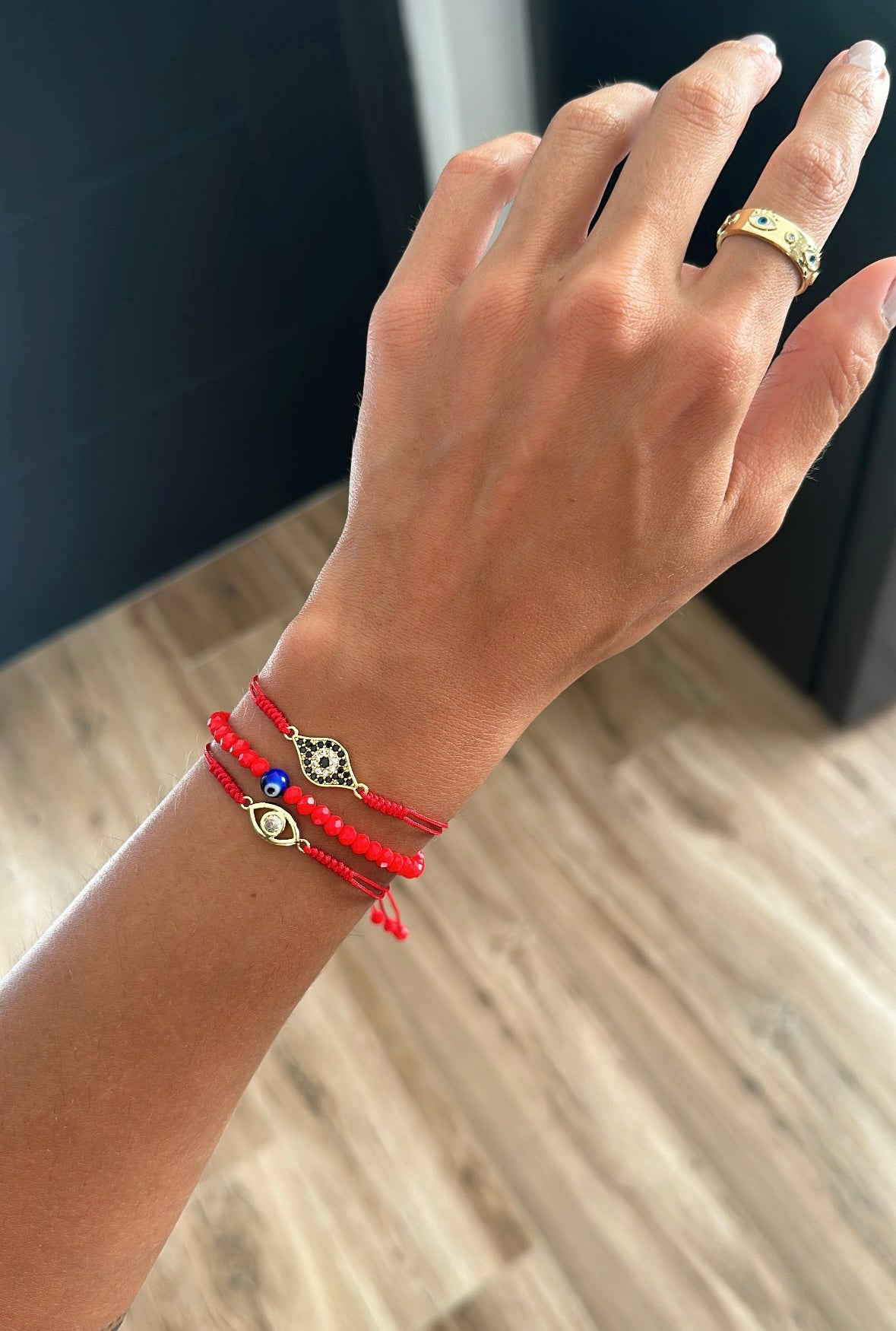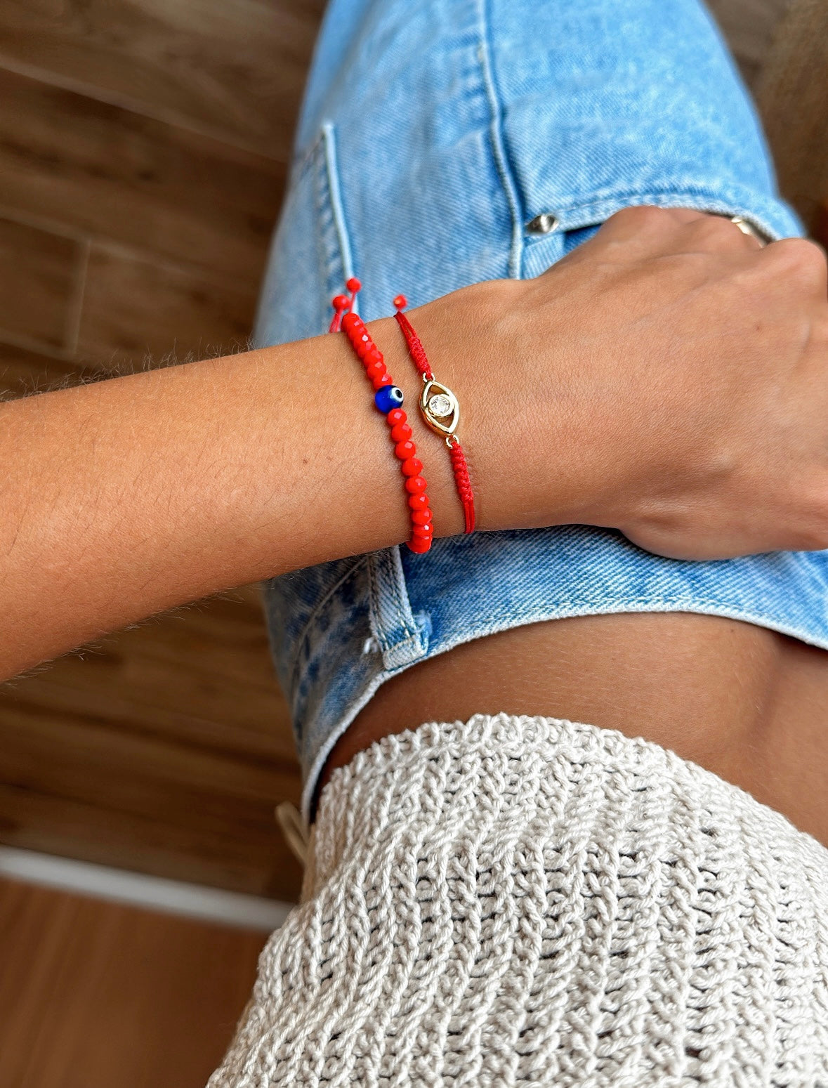 Brazaletes en hilo con charm de ojo turco y zirconia y 7 nudos en cada extremo