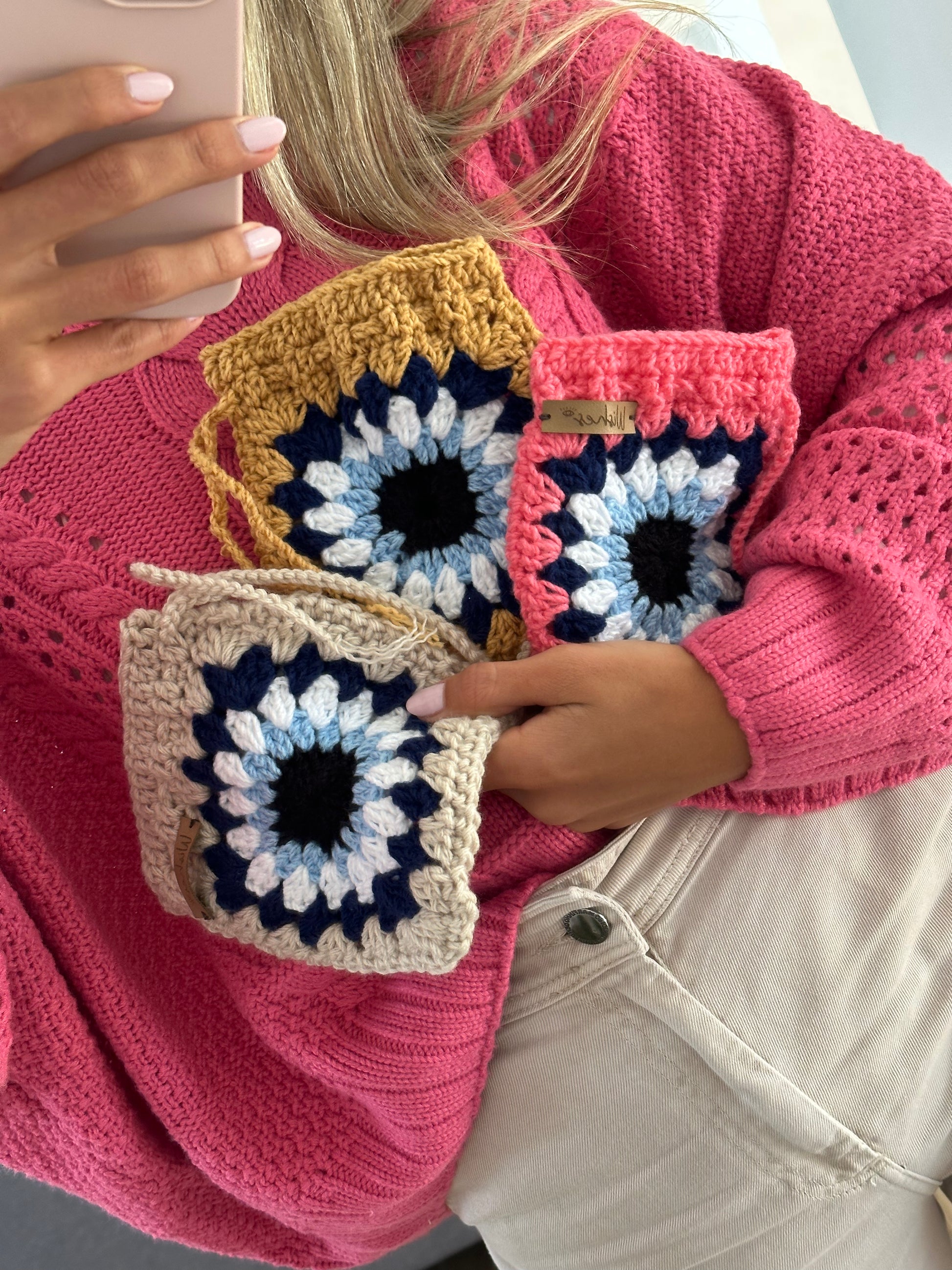 Sobre de crochet tejido a mano de 13 x 16 cm